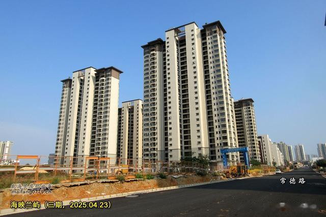 尽管如此,楼盘施工方还是见缝插针。现在,常德路已经铺上了沥青,海映兰屿三期的多栋楼宇外立面也基本完工。